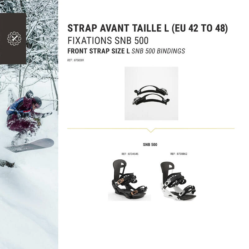 Cette piÚce détachée est conçue pour éviter de jeter sa fixation de snowboard pour une piÚce cassée ou perdue (voir la compatibilité dans les caractéristiques).Ces straps avant (ou orteil) sont des piÚces SAV pour fixations de snowboard Wedze, pour des chaussure de pointures 36 à 41.