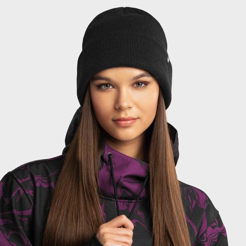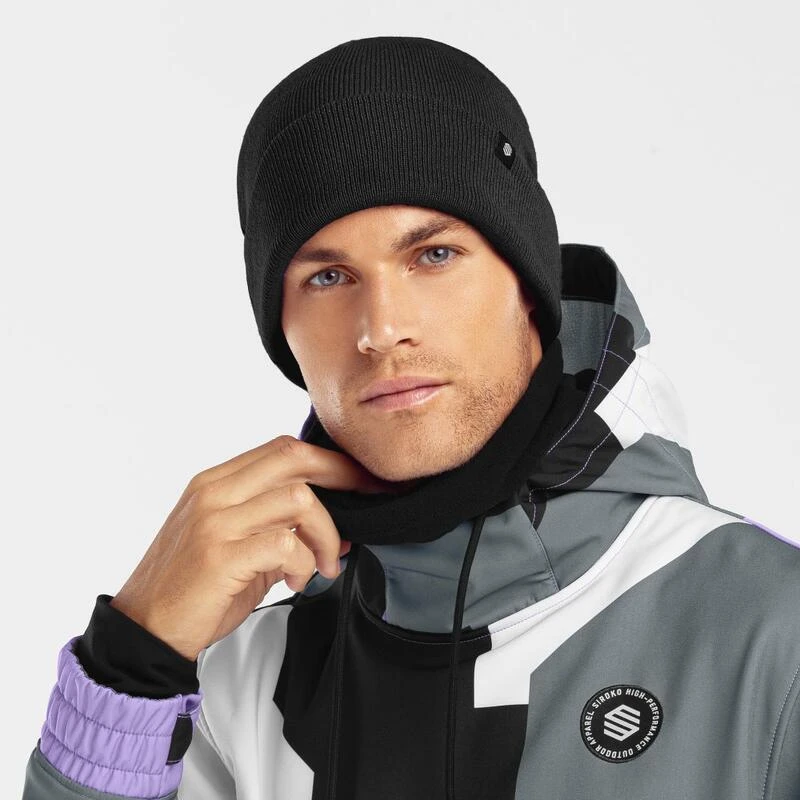 Bonnet Snowflake Black ultrarésistant en tissu acrylique lavable en machine, taille unique avec revers adaptable pour un style unique