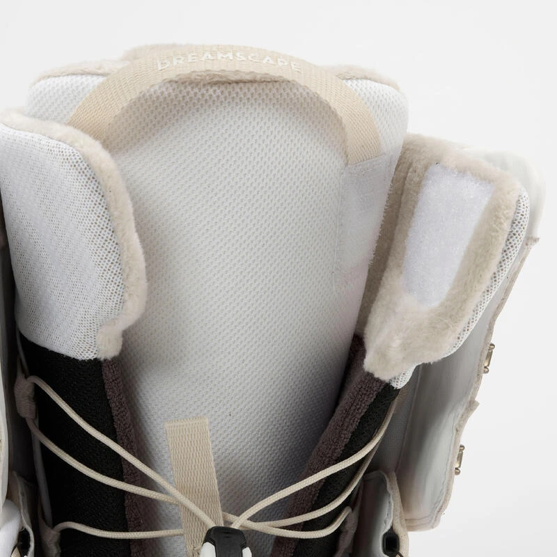 Le chausson de la boots Endzone est englobĂ© par une nappe textile solidaire de la chaussure et serrĂ©e en 3 points. Ce concept permet de bien rĂ©partir la force de serrage autour du pied au service d’une bonne stabilitĂ© du pied dans la chaussure.