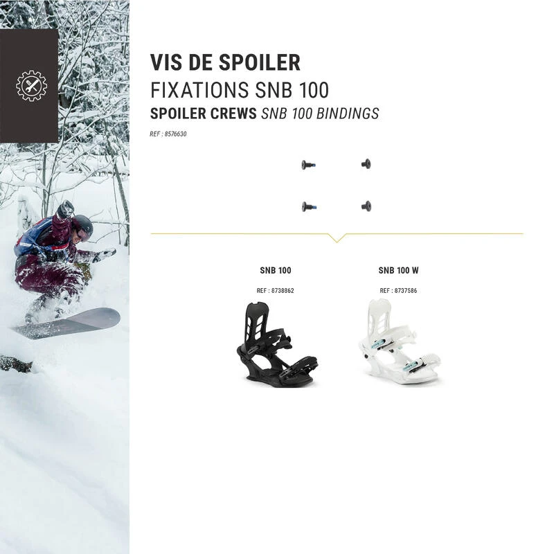 Cette pièce détachée est conçue pour éviter de jeter sa fixation de snowboard pour une pièce cassée ou perdue (voir la compatibilité dans les caractéristiques).Le kit SAV comprend 2 vis et 2 écrous pour une seule fixations de snowboard Wedze de type SNB 100. Acier inoxydable.