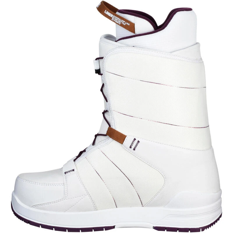 Cette chaussure de snowboard couvre les besoins essentiels de la snowboardeuse : chaleur, confort, maintien du pied et rigidité pour bien piloter sa planche.