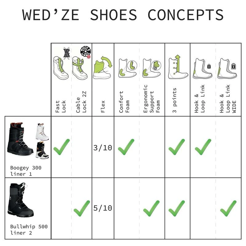 Pour la Boogey 300, le chausson NIVEAU 1 possède 4 concepts :